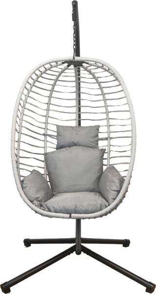 Összecsukható függőszék, függőfotel szürke rattan, szürke párnával NS016