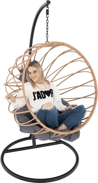 Tojás anyaga: mű rattan Szín: természetes Párna anyaga: szövet A szövet kopásállósága: 95 000 MartindaleSzín: szürke Anyag állvány: fém Szín: fekete Méretek (SzxMéxMa): 105x89x197 cm Teherbírás: 90 kg Ülésmagasság: 30 cmÜlésmélység: 80 cmPárnákkal szállítjuk Szétszerelve szállítjuk